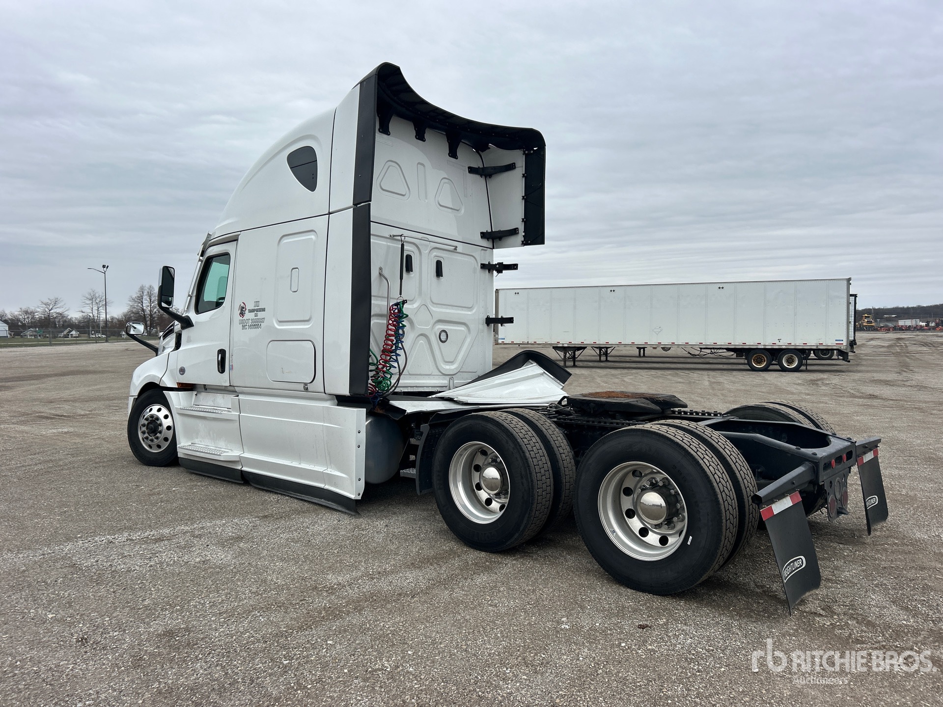 Detroit DD15 505 hp Engine, 2023 US EPA Label, Detroit DT12-1650-OHE 12-Speed Automated Transmission, 13300 lb Front Axle, 40000 lb Rears, 53300 lb GVWR, Engine Brake, 70 in High Rise Sleeper Cab, Bunk Beds, 237 in Wheelbase, Air Suspension, Aluminum Wheels, 275/80R22.5 Front Tires, 295/75R22.5 Rear Tires, Air Sliding 5th Wheel, Dual Fuel Tanks