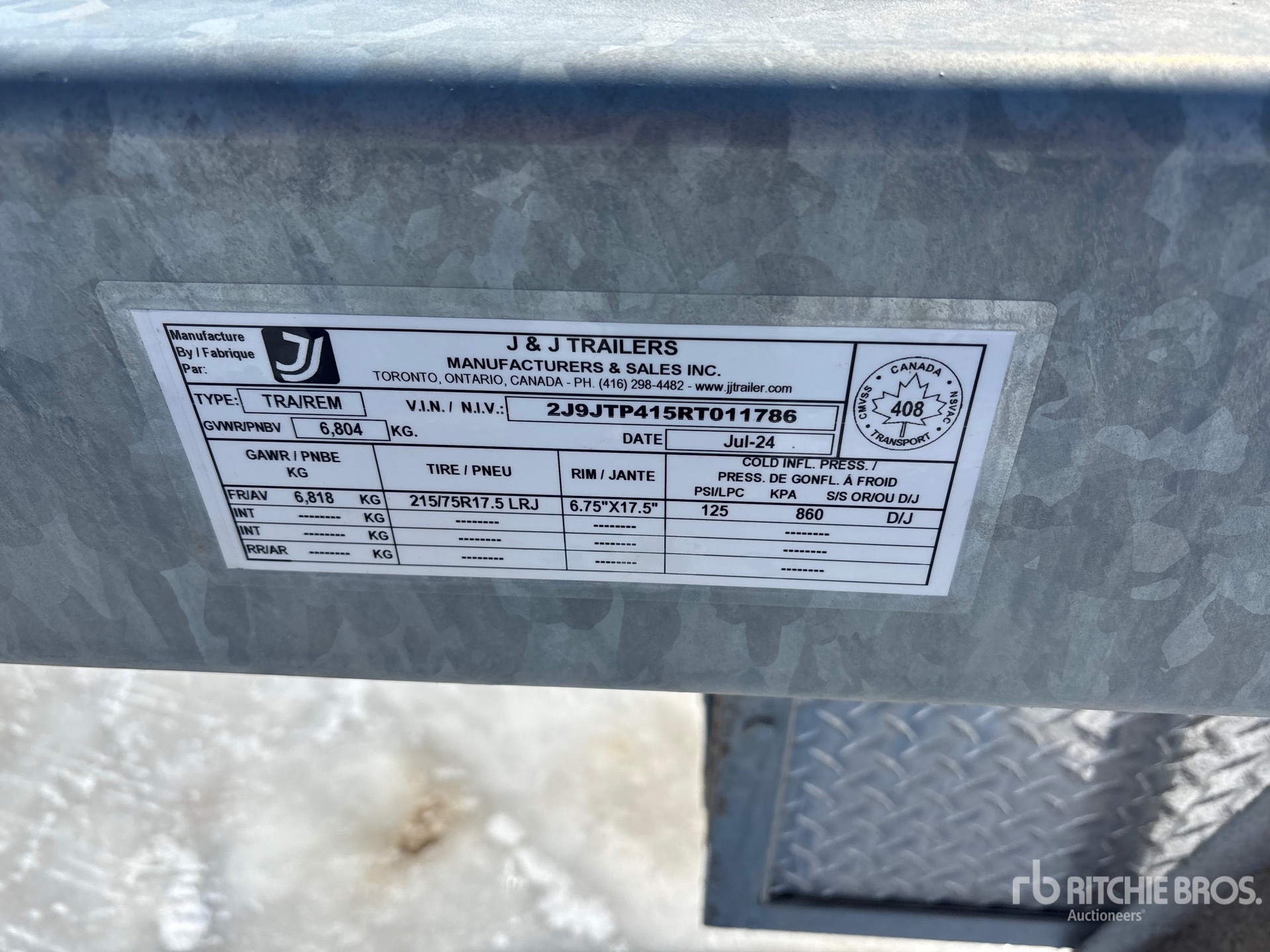 Lunette Ring Hitch, Spring Suspension, 3 Stanchions, Aluminum Wheels, 215/75R17.5 Tires, 6804 kg GVWR