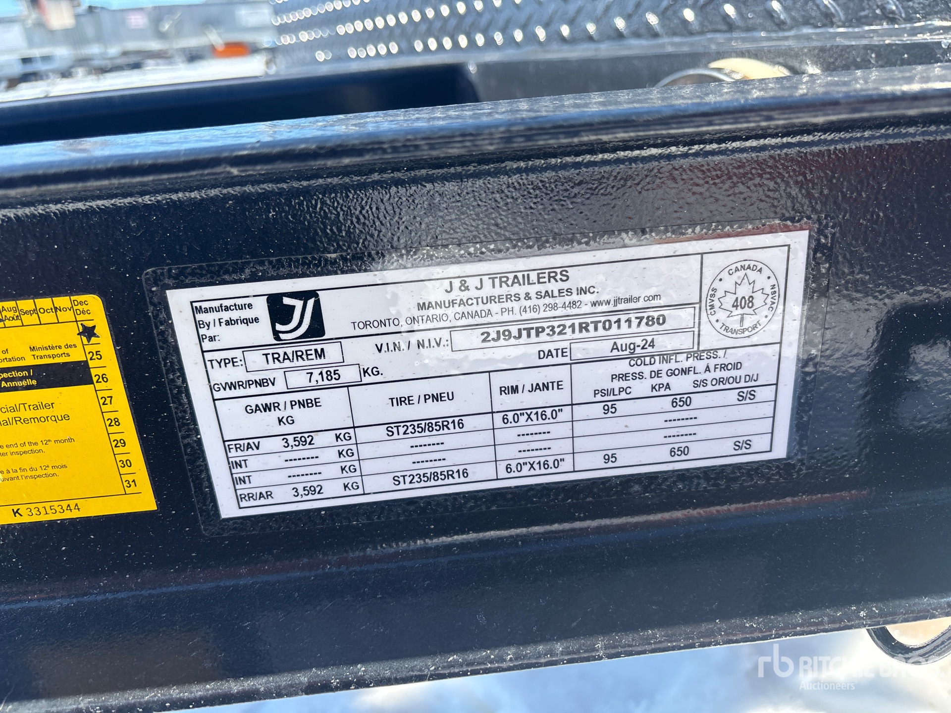 Lunette Ring Hitch, Spring Suspension, 3 Stanchions, Aluminum Wheels, 235/85R16 Tires, 7185 kg GVWR