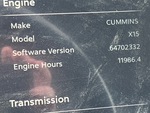 Cummins X15 500 hp Engine, 2023 US EPA Label, 11986 Engine hrs, Eaton Fuller EEO-XXF112C 12-Speed Automated Transmission, 13200 lb Front Axle, 40000 lb Rears, 53200 lb GVWR, Engine Brake, 58 in High Rise Sleeper Cab, Bunk Beds, Bunk Heater, 239 in Wheelbase, Air Suspension, Aluminum Outer Wheels, 11R22.5, Air Sliding 5th Wheel, Dual Fuel Tanks