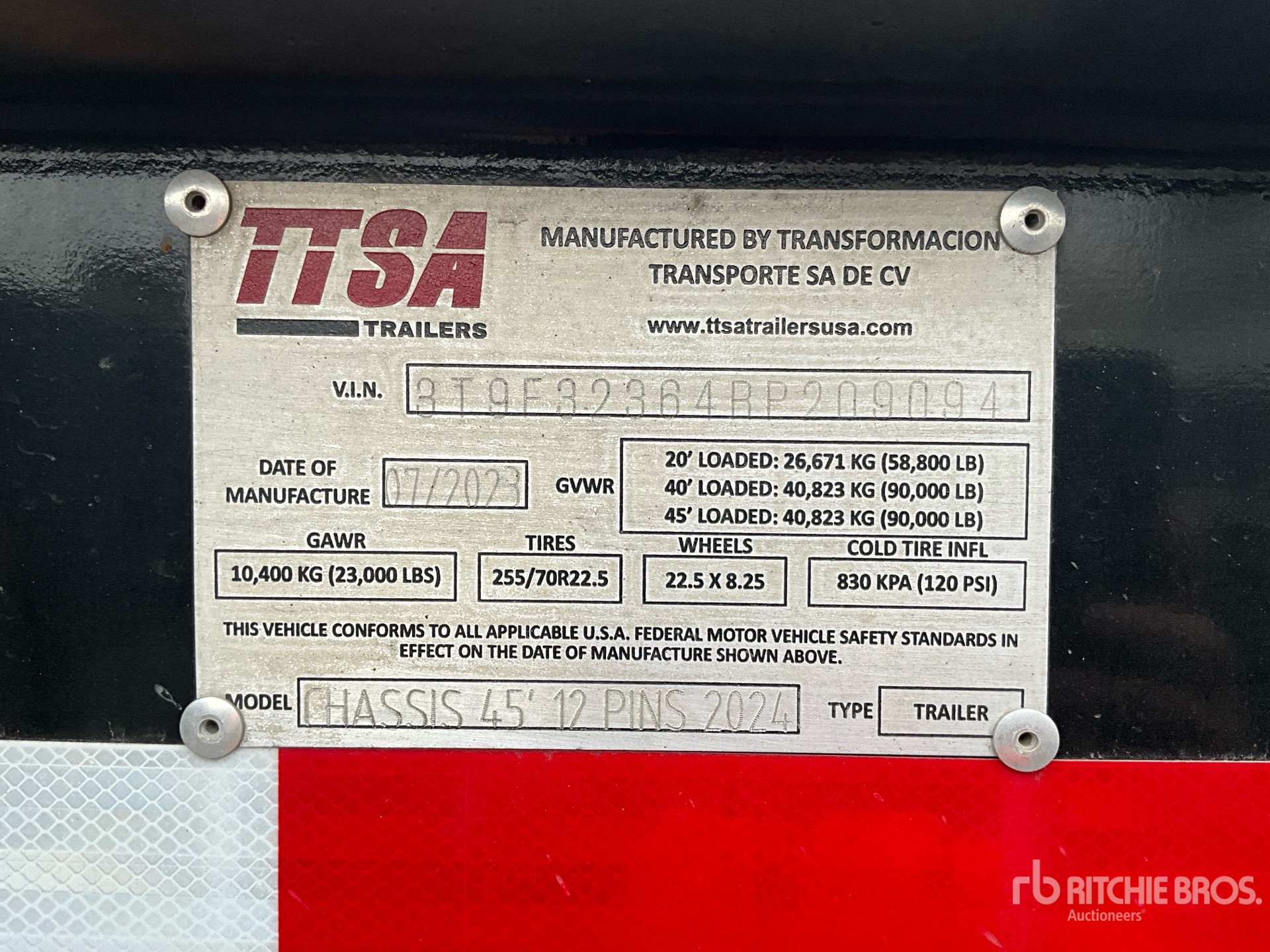 Air Ride Suspension, Lift 1st- Axles, 3-Way Container Pins, 255/70R22.5 Tires, 90000 lb GVWR