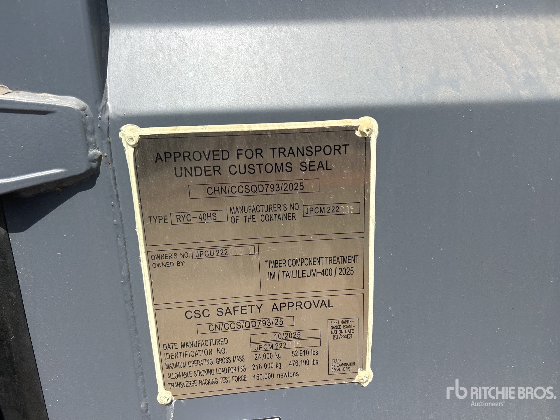 Karyawan Ritchie Bros. yang berkualifikasi mengumpulkan detail informasi peralatan dan melakukan uji fungsional pada komponen utama pada aset ini. Anda, atau perwakilan Anda, juga dapat memeriksa item apa pun pada situs sebelum melakukan penawaran pada hari pelelangan.