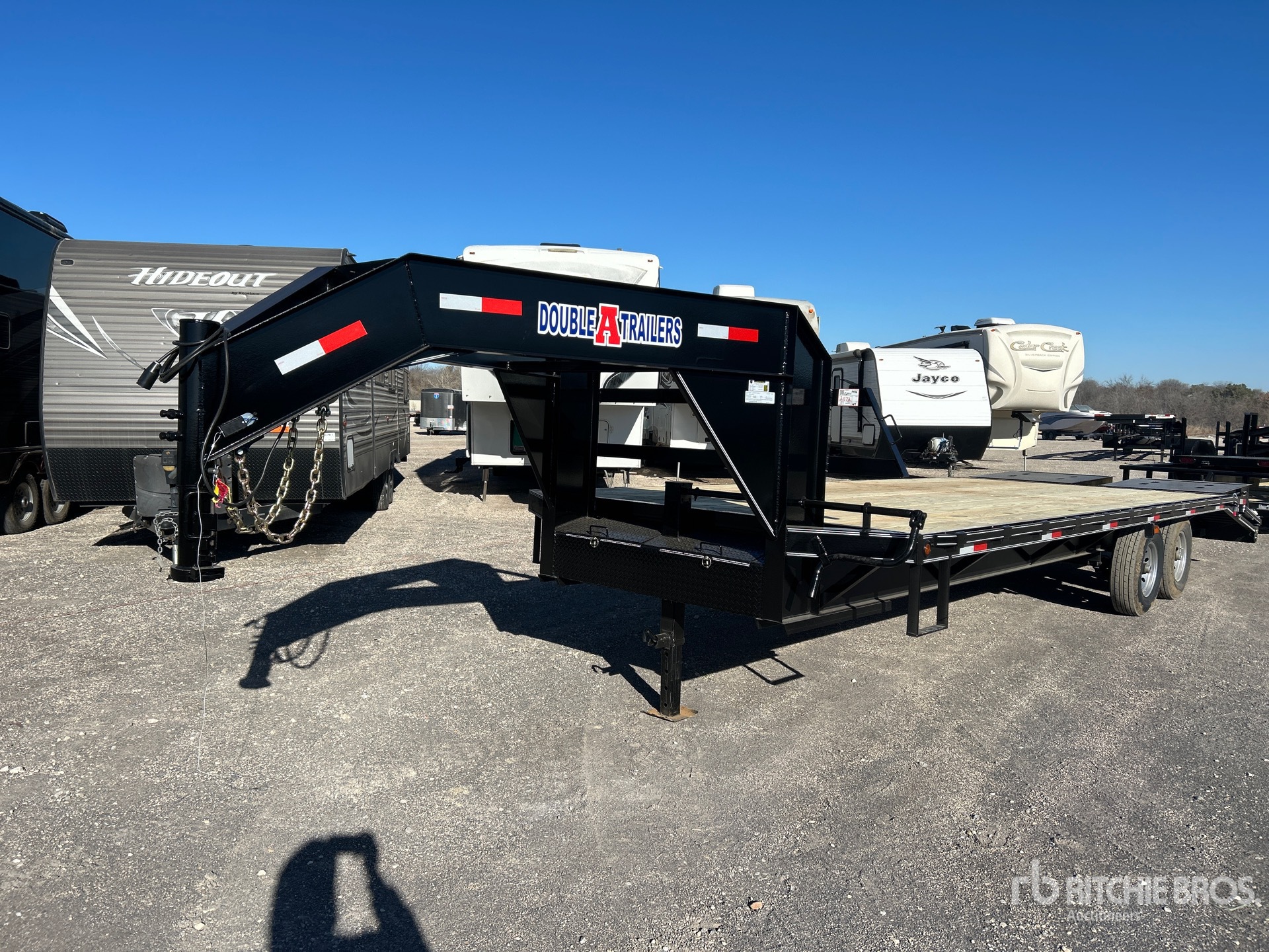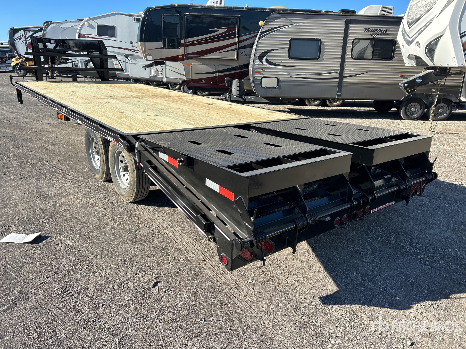 Spring Suspension, Electric Brakes, 20 ft Main Deck, 5 ft Fixed Dovetail, 96 in Usable Deck Width, 102 in Overall Deck Width, Manual Ramps, Wood Flooring, 235/80R16 Tires, 14000 lb GVWR