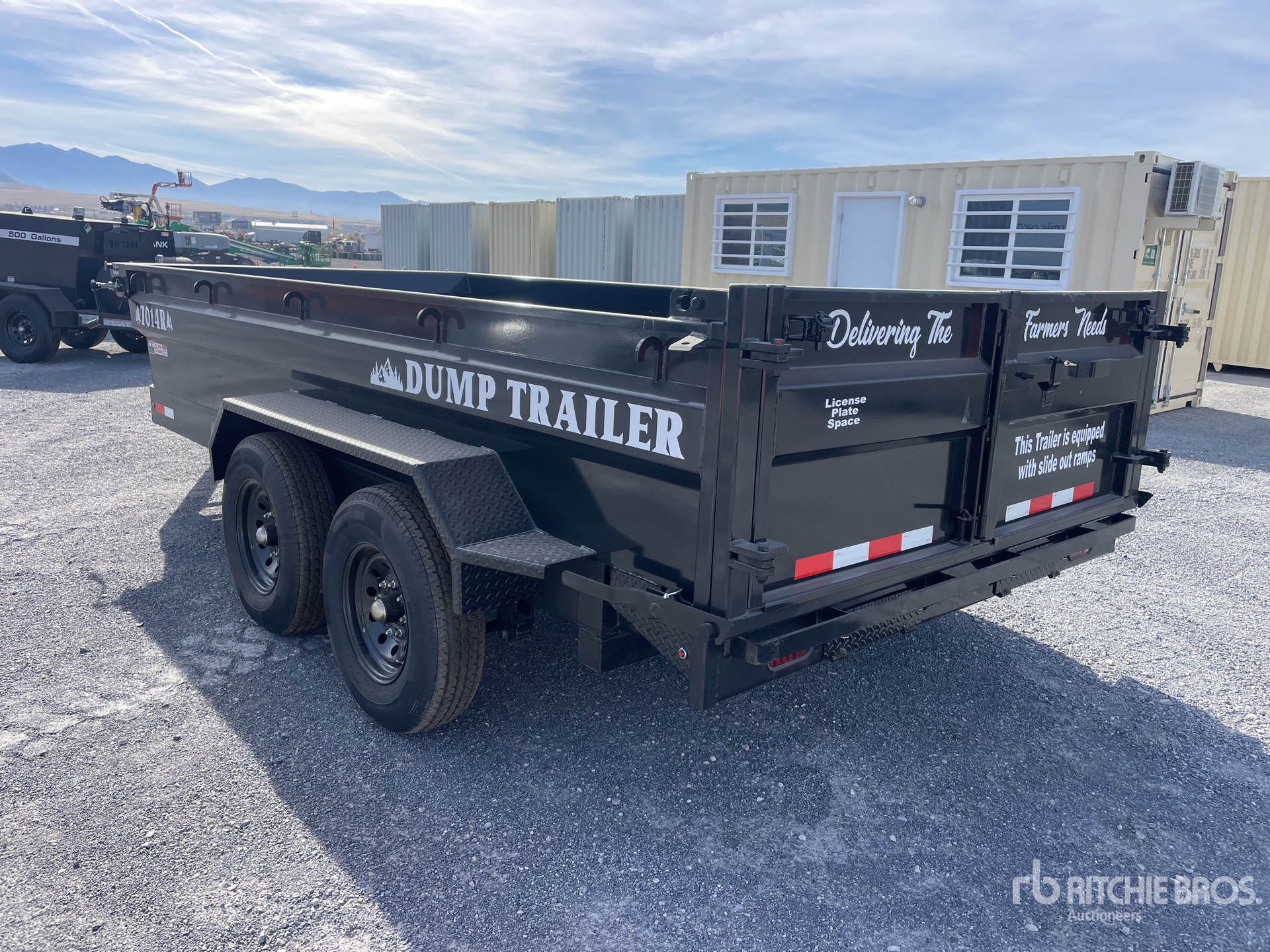 Located in Lane 23 Spot 2, Ball Hitch, Spring Suspension, 14 ft Body, 25 in Side Walls, Manual Roll Tarp, 2-Way Tailgate, 235/80R16 Tires, 14000 lb GVWR