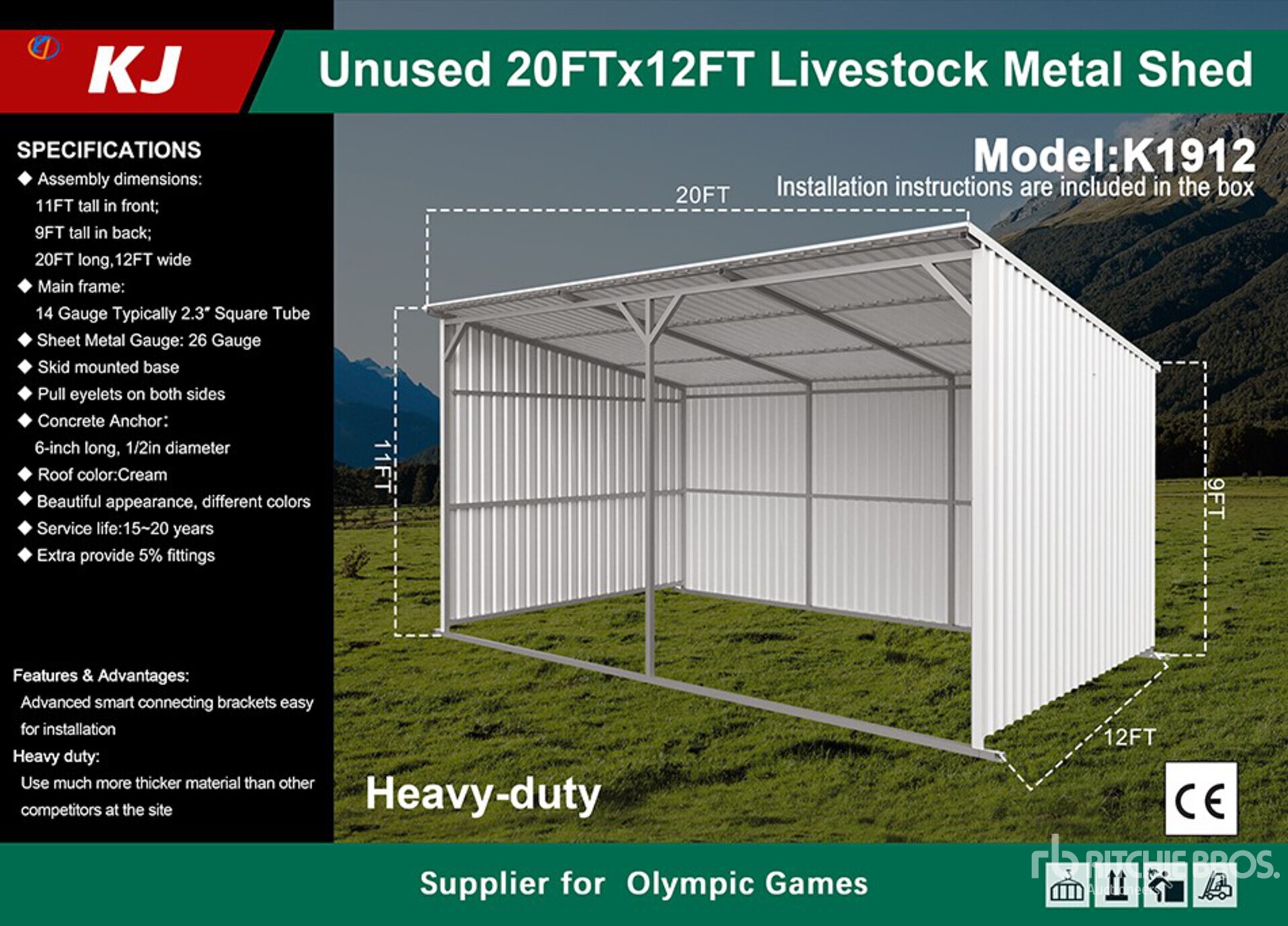 2026 KJ K1912 12 ft x 20 ft Livestock Shelter (Unused)