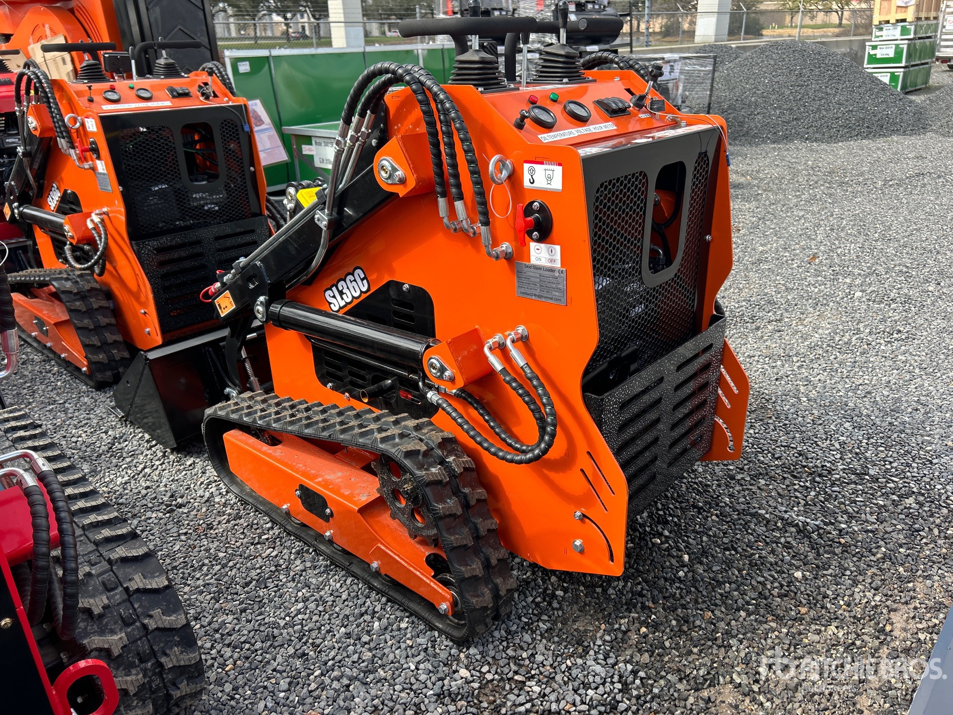 Open Operator Station, 2025 US EPA Label, 6 in Track Belts, Manual Coupler, 38 in Bucket, Product images displayed are stock photos. Item is new/unused.