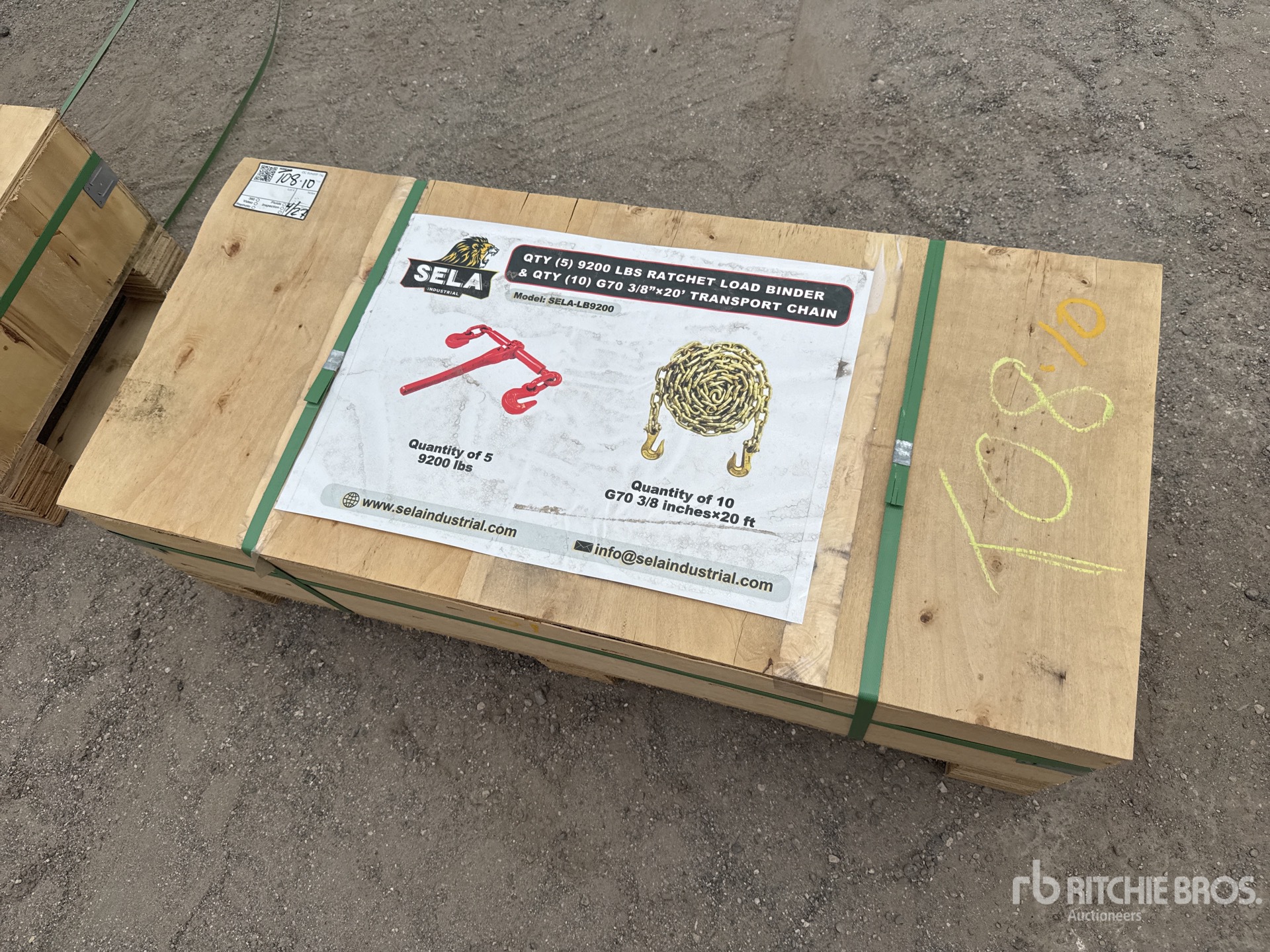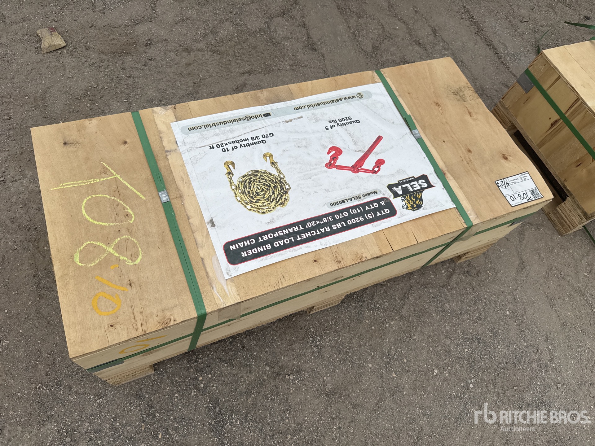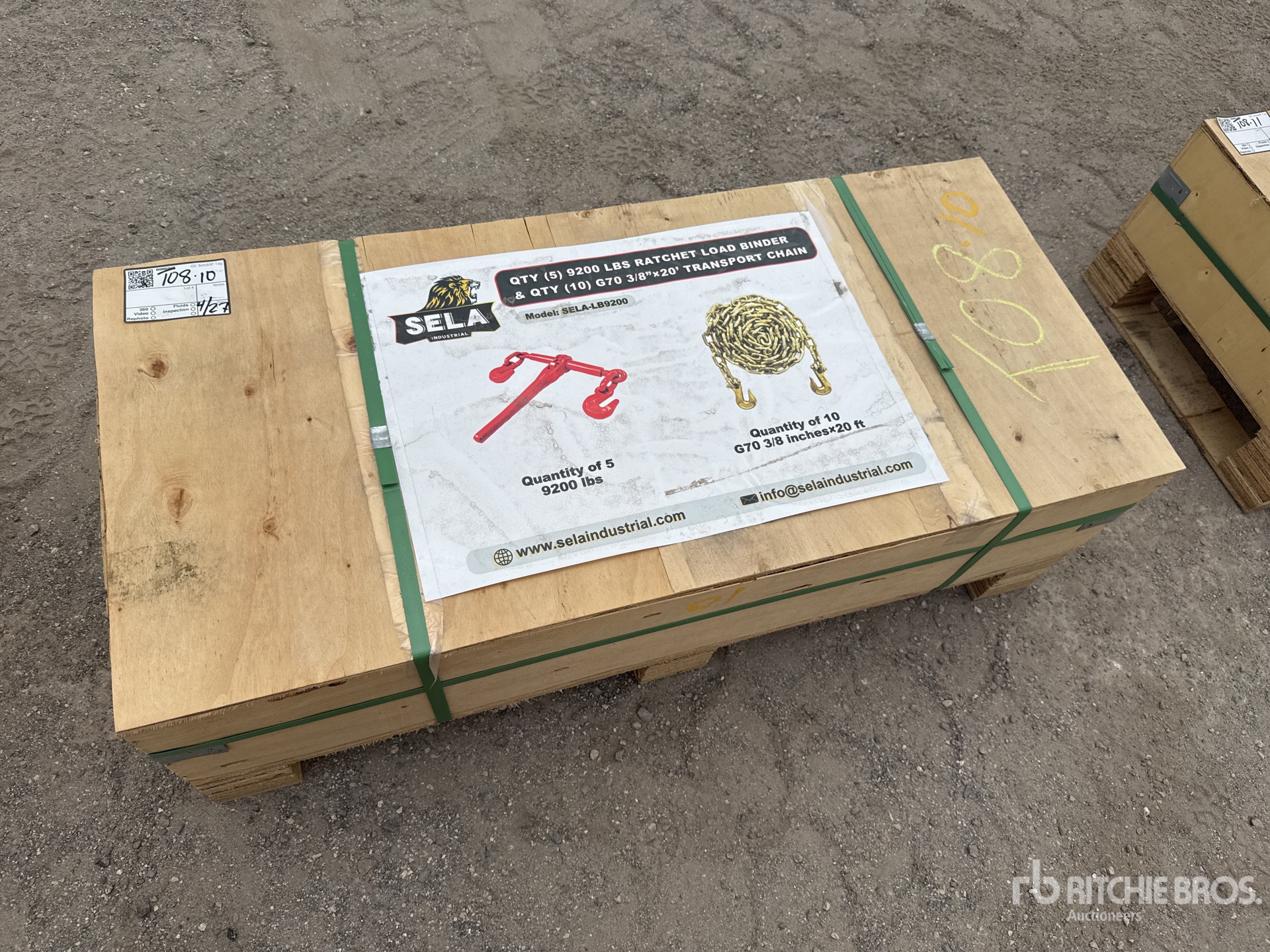 (5) 9200 lb Ratchet Binders, (10) 3/8 in x 20 ft Chains ; Lane 107 Section 2