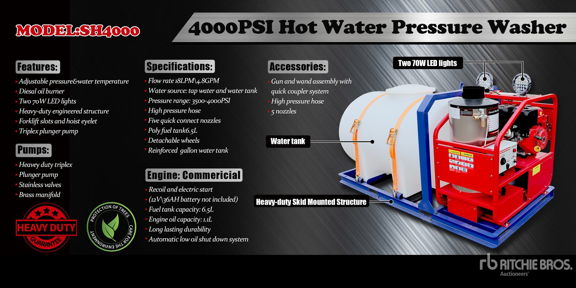 Water Heater, Hose, Spray Wand, Gasoline Engine