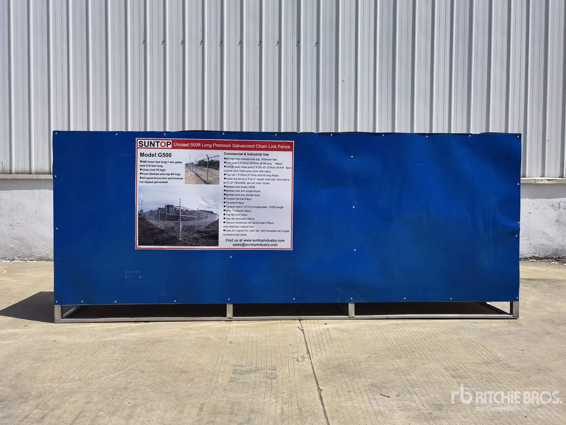 (10) Rolls of 50 ft x 7 ft Fencing, (2) Gates, (2) Rolls of 750 ft Barbed Wire, Total Length 516 ft, Product images displayed are stock photos. Item is new/unused.