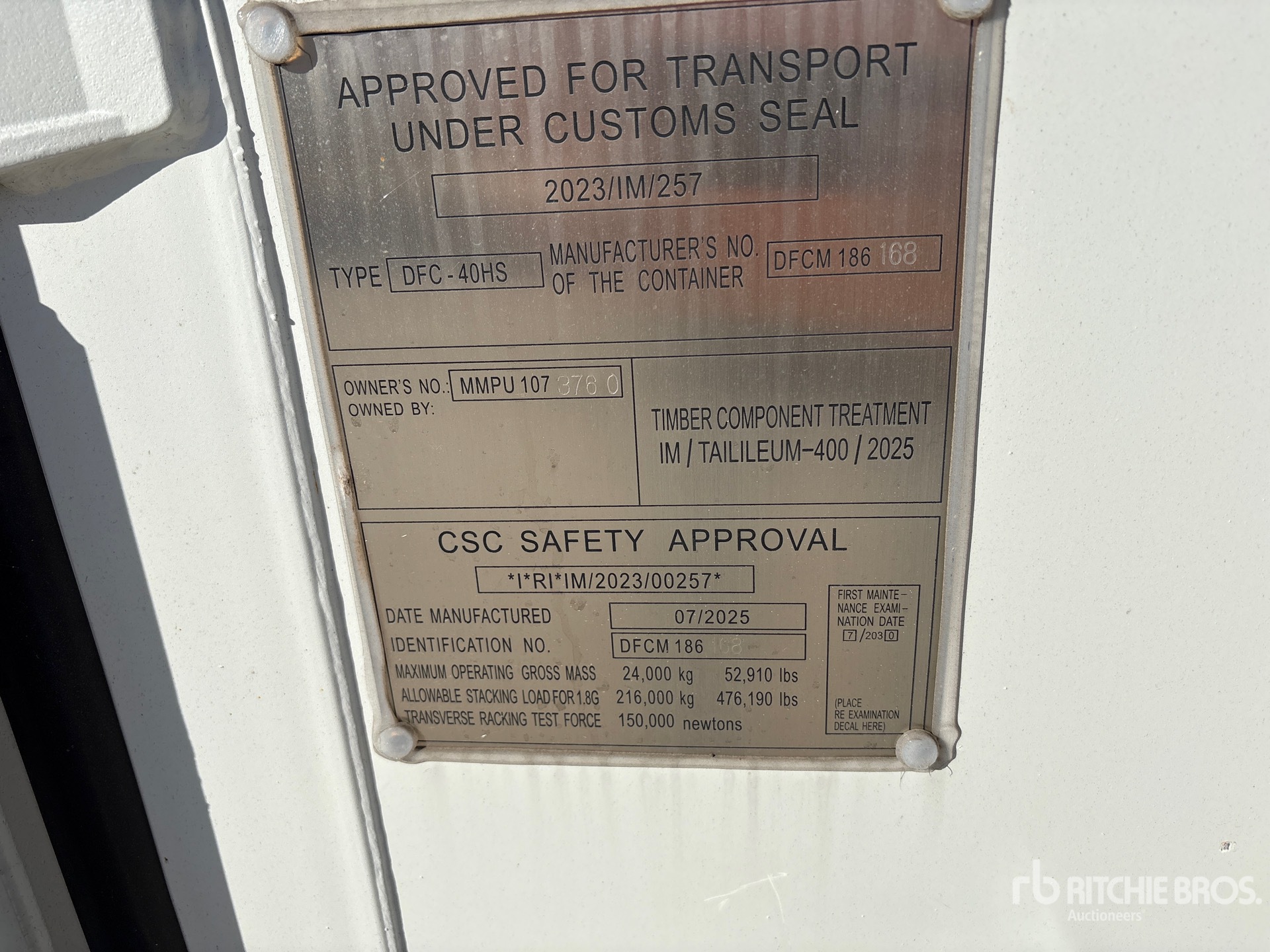 Karyawan Ritchie Bros. yang berkualifikasi mengumpulkan detail informasi peralatan dan melakukan uji fungsional pada komponen utama pada aset ini. Anda, atau perwakilan Anda, juga dapat memeriksa item apa pun pada situs sebelum melakukan penawaran pada hari pelelangan.