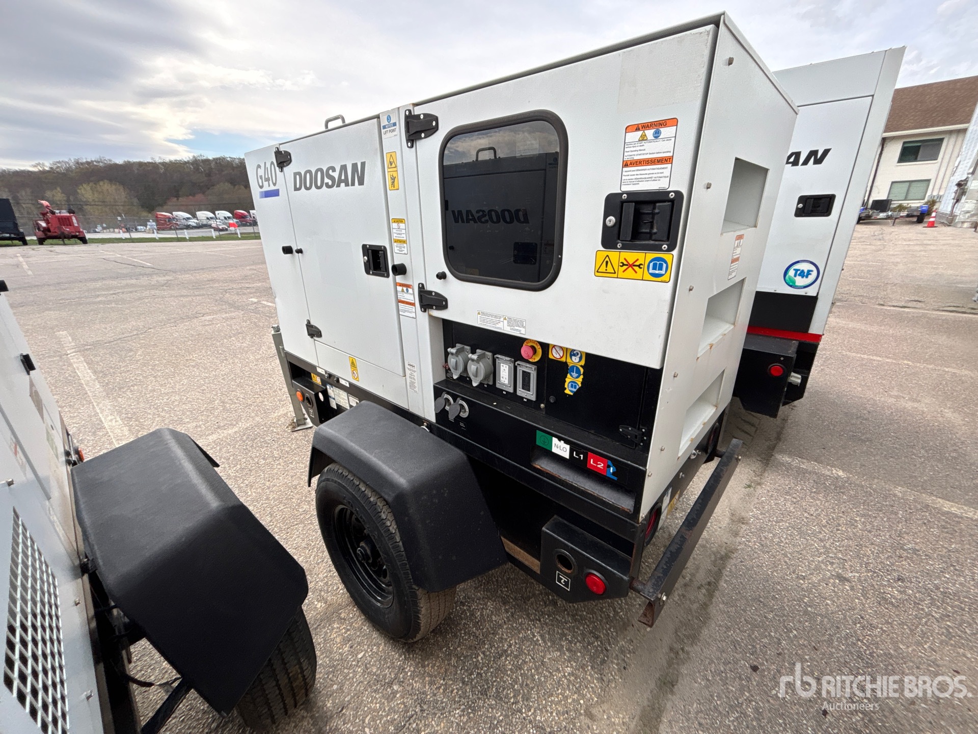 Tier 4, 2021 US EPA Label, CARB Compliant, Doosan D18 3 Cylinder 1.8 L Diesel Engine, 39 kVA/31 kW Rated 3 Phase Output, 208 V / 240 V / 480 V Rated Voltage, 32 kVA,/32 kW, Rated Single Phase Output, 120 V / 240 V Rated Voltage, 240 V & 120 V Receptacles, Sound Attenuated, Bottom Mounted Fuel Tank, Lunette Ring Carrier Trailer, Electric Brakes