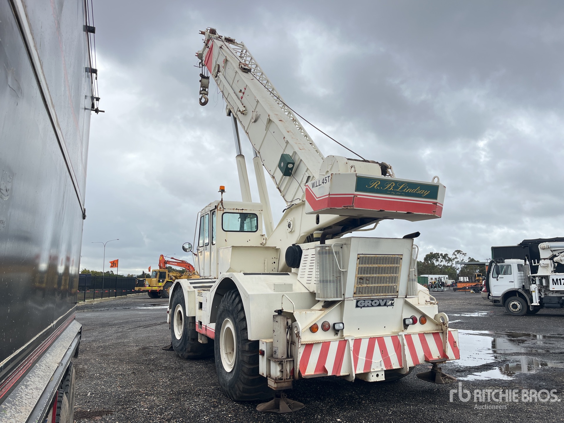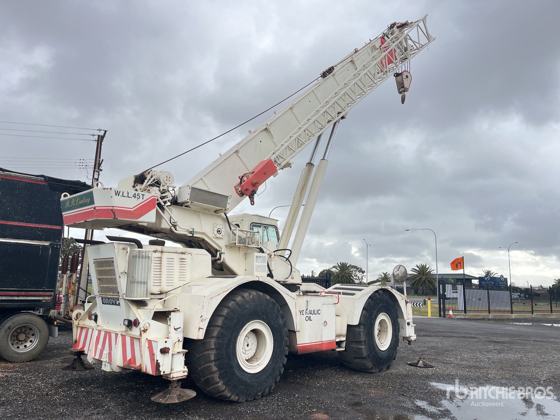 Air Conditioner, Automatic Transmission, Detroit V6 Diesel Carrier Engine, Anti Two-Block, Robway Load Moment Indicator, 10.8 m Minimum 33.5 m Maximum Boom Length, 10 m to Swingaway Jib, 318 kg 45 ton Capacity 4 Sheave Hook Block