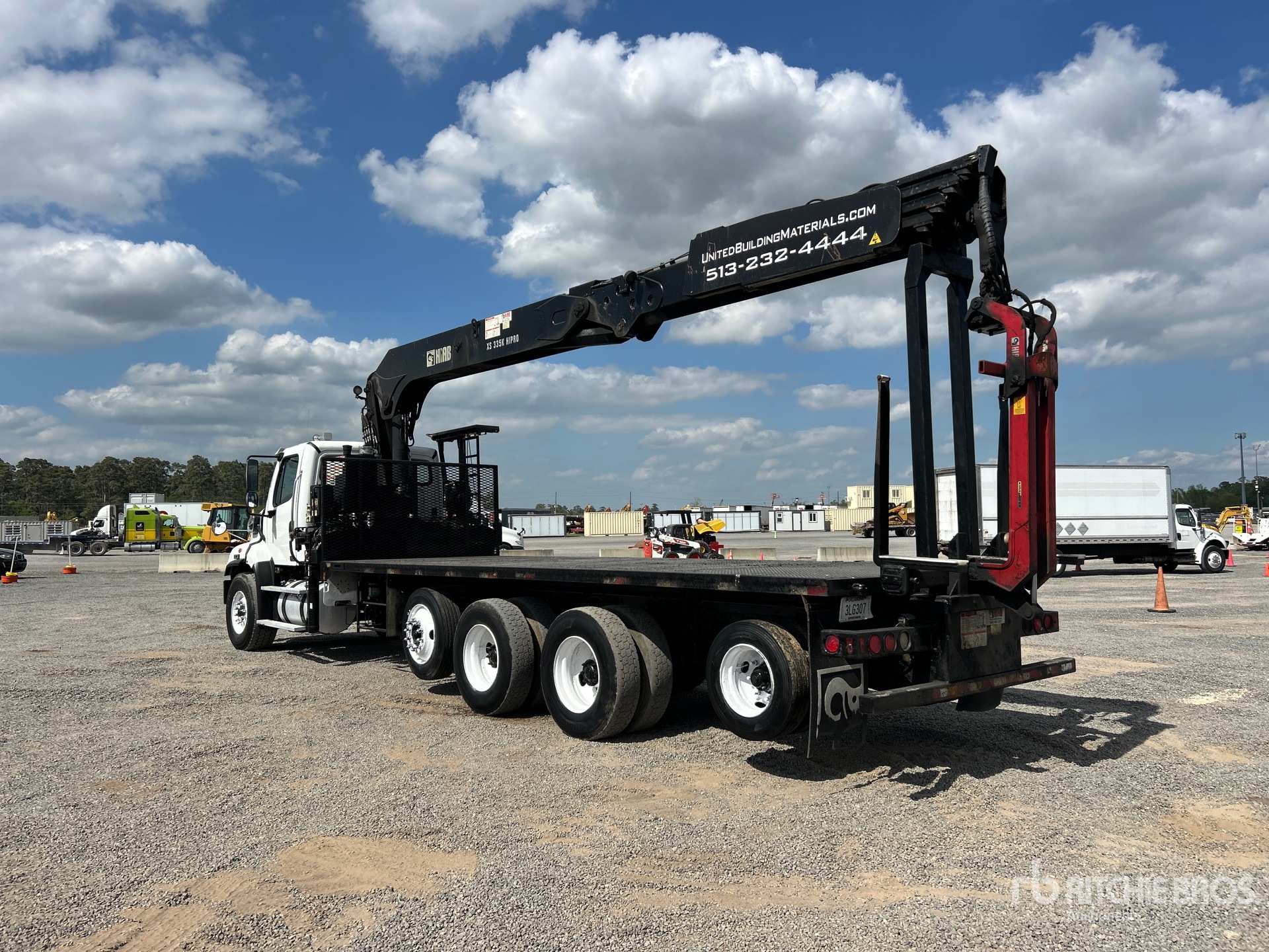 Detroit DD13 6 Cylinder 12.8 L Diesel 500 hp Engine, 2015 US EPA Label, Requires Diesel Exhaust Fluid, 18226 Engine hrs, Engine Brake, Eaton Fuller FRO-15210C 10-Speed Manual Transmission, 20000 lb Front Axle, 46000 lb Rears, 3.91:1 Axle Ratio, 66000 lb GVWR, Air Ride Cab, 425/65R22.5, Air Lift Tag Axle, TufTrac Air Ride Suspension, 277 in Wheelbase, PTO, 21 ft - 58 ft 5 Section Boom, Out and Down Outriggers, Hiab XS335K 4HIPRO 8300 lb 5 Section Hydraulic Crane, 24 ft x 96 in Bed