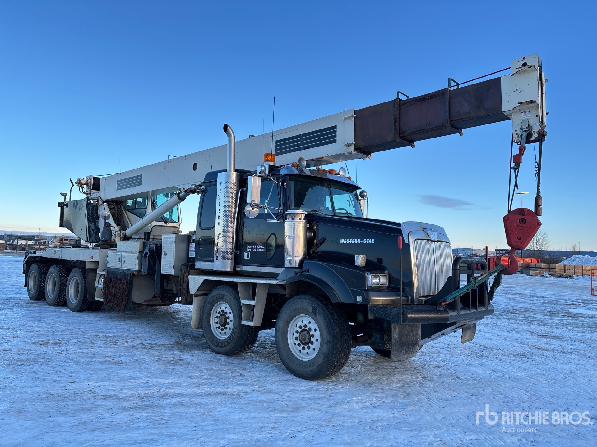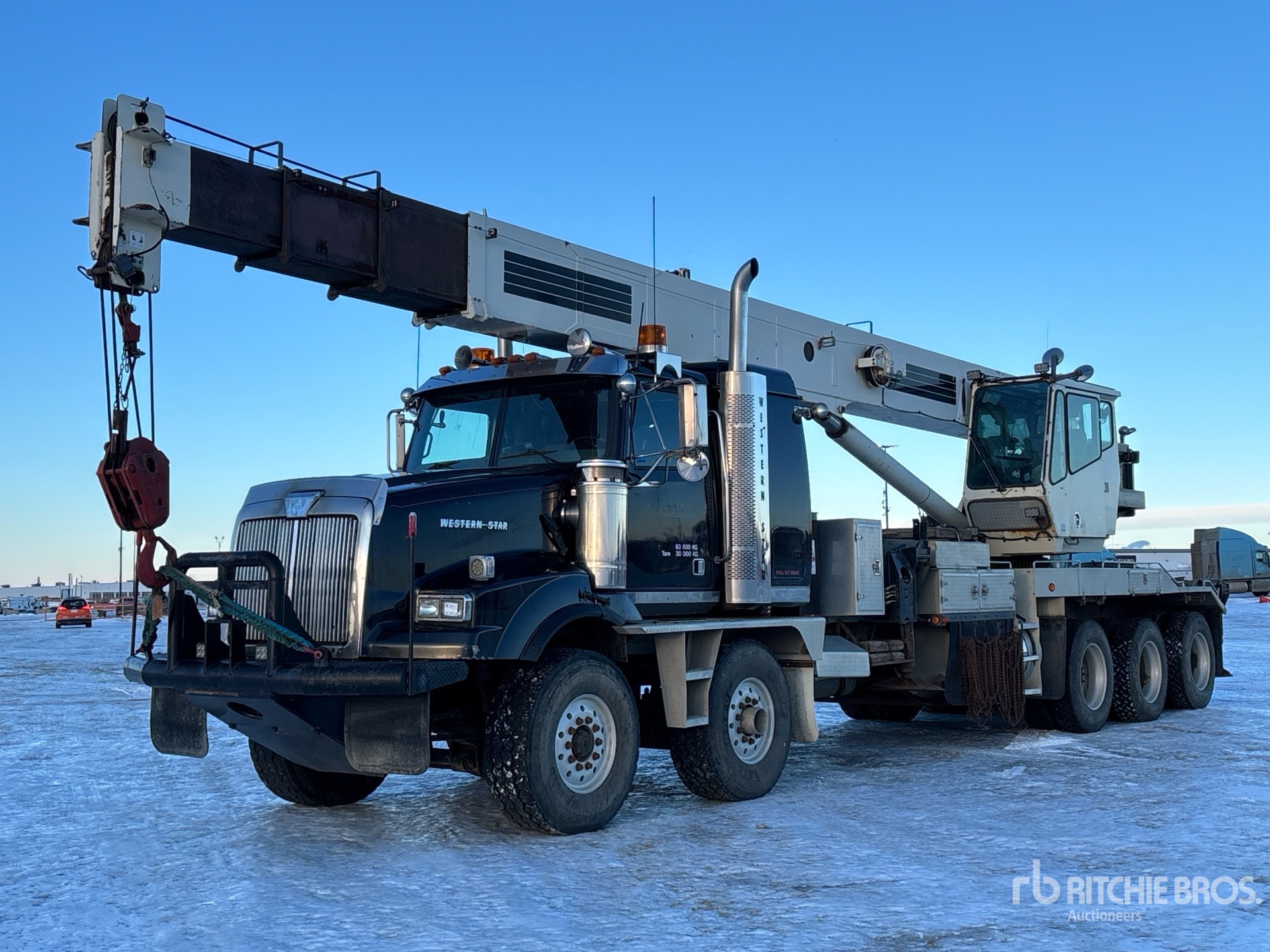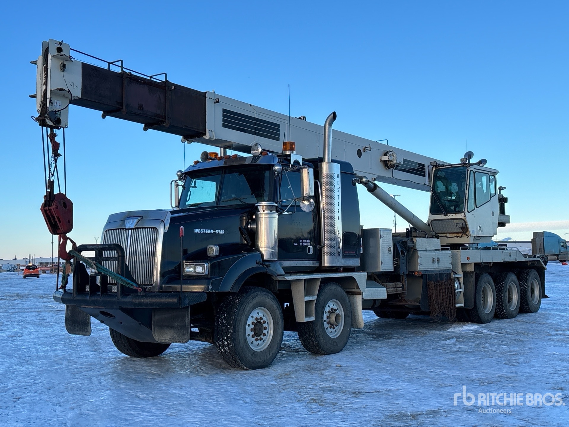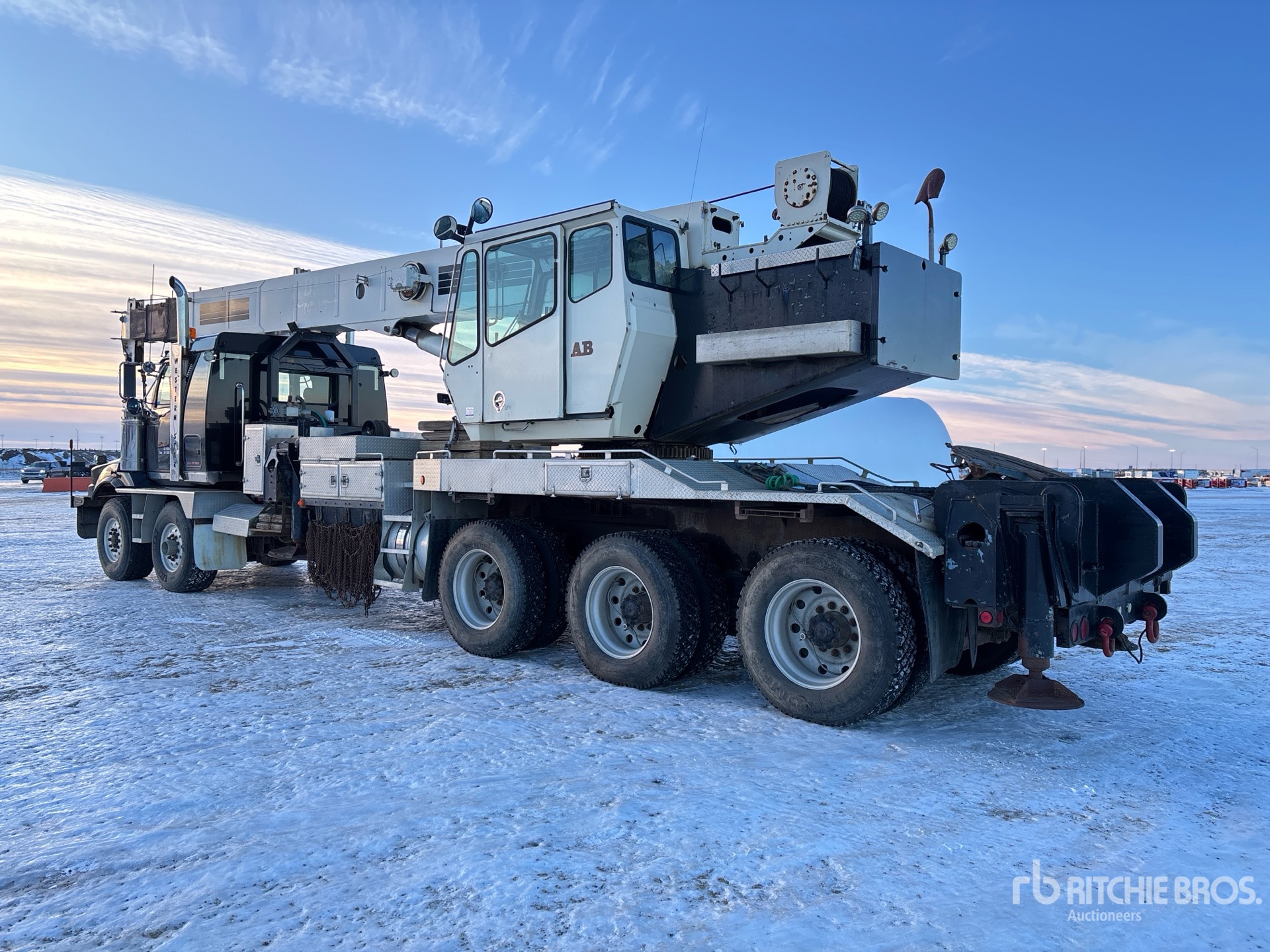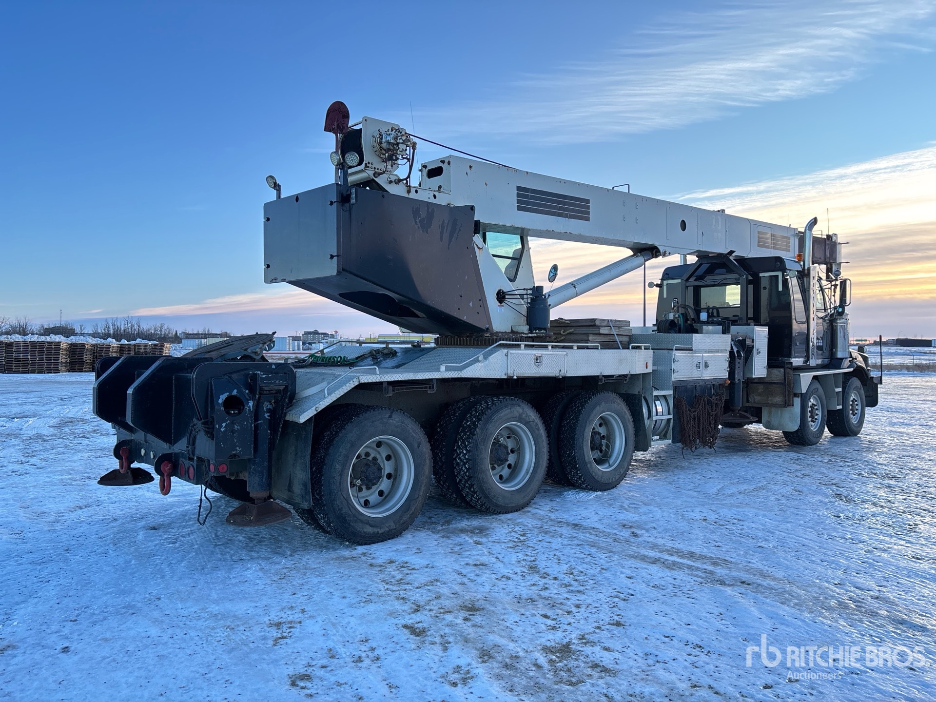 Cat C15 6 Cylinder 14.6 L Diesel 475 hp Engine, Engine Brake, Eaton Fuller RTLO-18918B 18-Speed Manual Transmission, Triple Differential Locks, 36000 lb Front Axle, 57000 lb Rears, Meritor RZ-166 Drive Axles, 4.56:1 Axle Ratio, 93000 lb GVWR, 36 in Flat Top Sleeper Cab, Aluminum Wheels, 425/65R22.5 Front Tires, 11R24.5 Rear Tires, Double Frame, Neway Air Ride Suspension, 361 in Wheelbase, PTO, 31 ft - 103 ft 4 Section Boom, Johnson 2 Sheave Hook Block, Enclosed Cab, Wireless Anti-Two Block, Out and Down Outriggers, Rear Outriggers, 5th Wheel, Boom s/n 35100