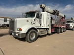 Paccar MX-13 6 Cylinder 12.9 L Diesel Engine, US EPA Label, 6008 Engine hrs, Engine Brake, Eaton Fuller RTO-16908LL 8LL Manual Transmission, 20000 lb Front Axle, 52350 lb Rears, Air Ride Cab, 48 in Flat Top Sleeper Cab, Aluminum Wheels, 425/65R22.5 Front Tires, 11R22.5 Rear Tires, Steerable Air Lift Pusher Axle, Dual Steering Boxes, Double Frame, Air Trac Air Ride Suspension, 318 in Wheelbase, PTO, 25 ft - 90 ft 4 Section Boom, Johnson 286 lb 1 Sheave 15 ton Capacity Hook Block w/ 14.5 mm Wire Rope,, Dual Controls, A-Outriggers, Rear Outriggers, National 800D 46000 lb 4 Section Hydraulic Crane, 25 ft 0 in x 96 in Bed, 5998 hours