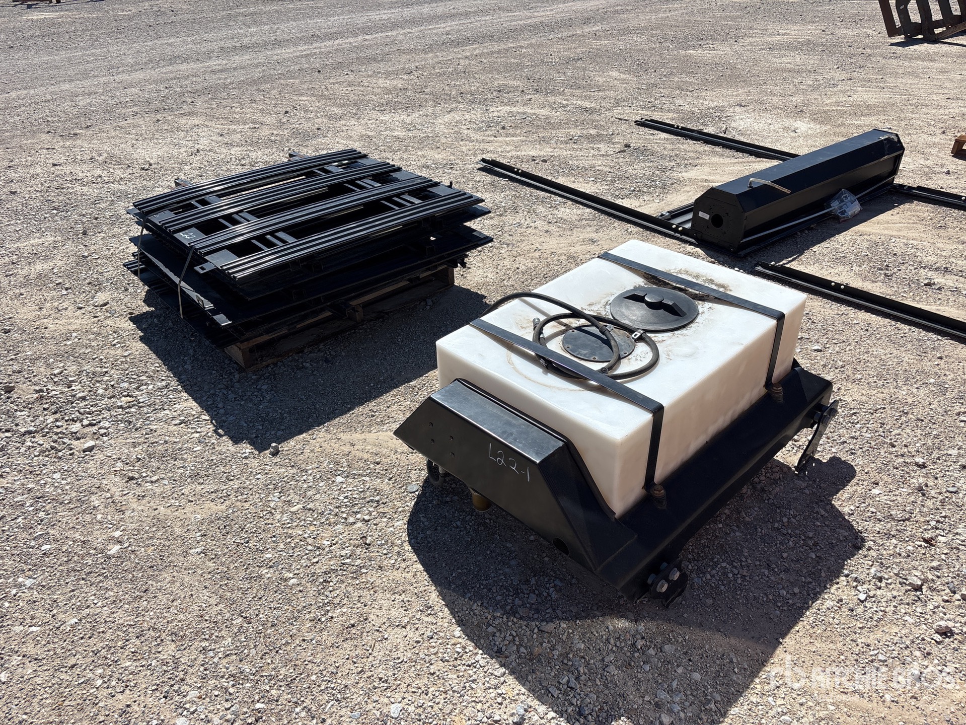 (1) Fifth Wheel Plate, (3) Bed Covers, (1) Water Tank, (1) Pallet of Stake Sides