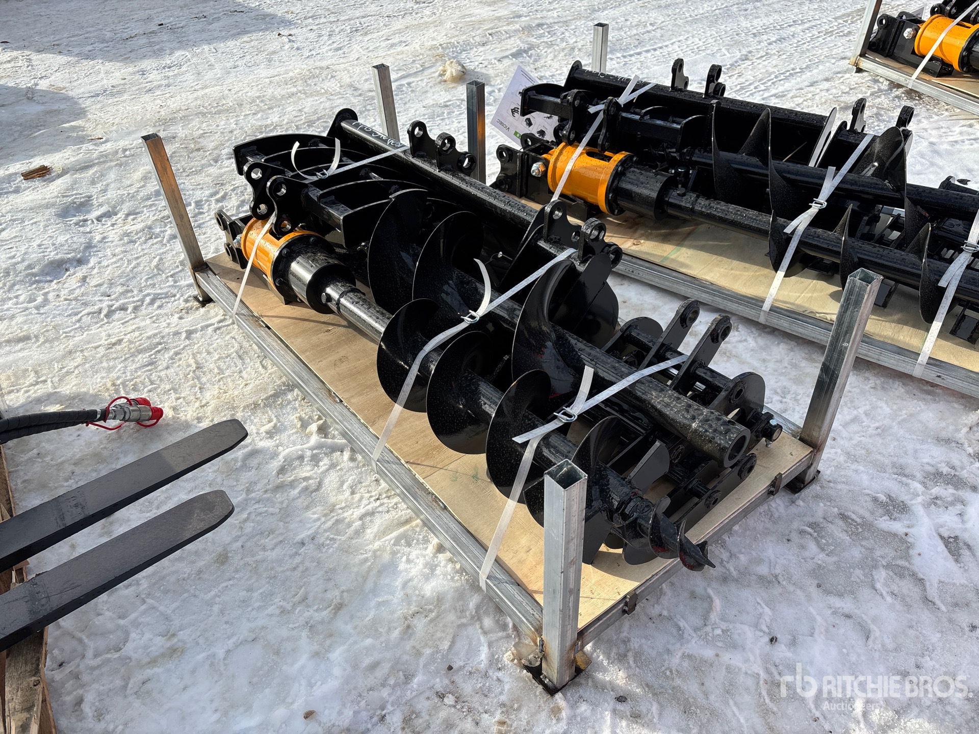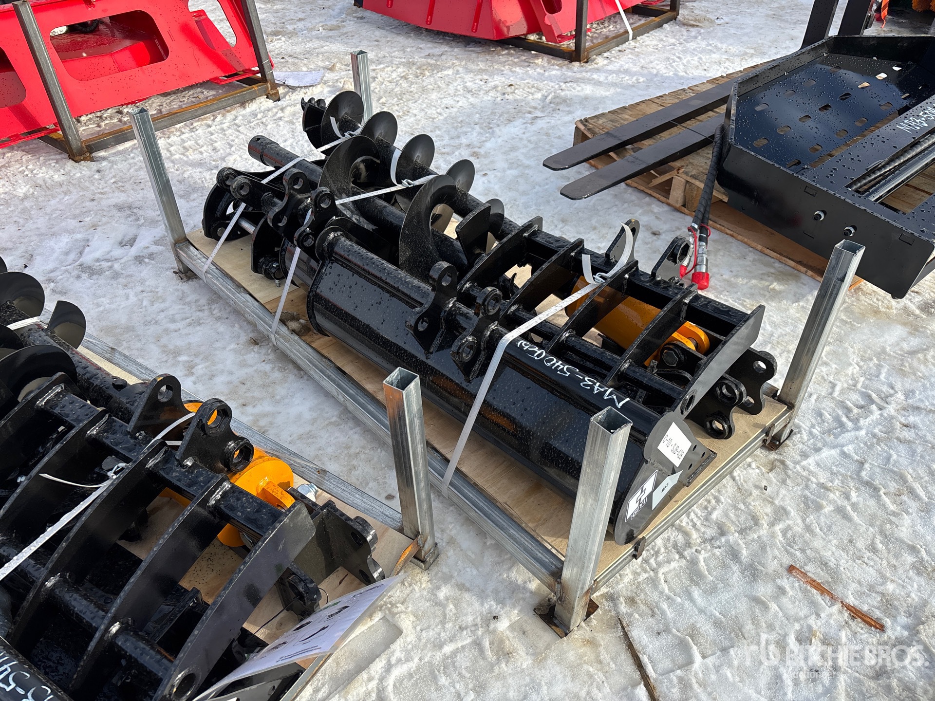 (1) Rake, (1) Ripper, (1) Grapple, (1) Auger w/ 12 in & 16 in Auger Bits, (1) 8 in Narrow Bucket, (1) 24 in Bucket, (1) 32 in Bucket
