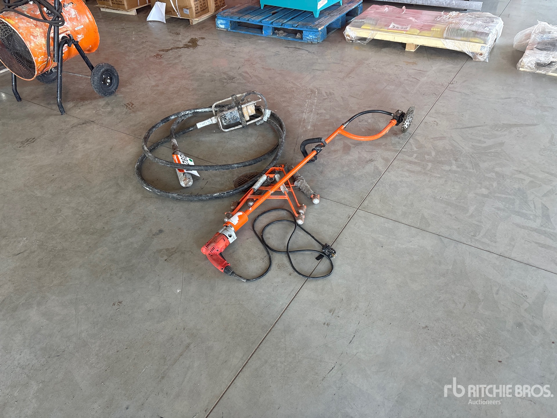 (1) Milwaukee Electric Drill, (1) Mixer Attachment, (3) Stands